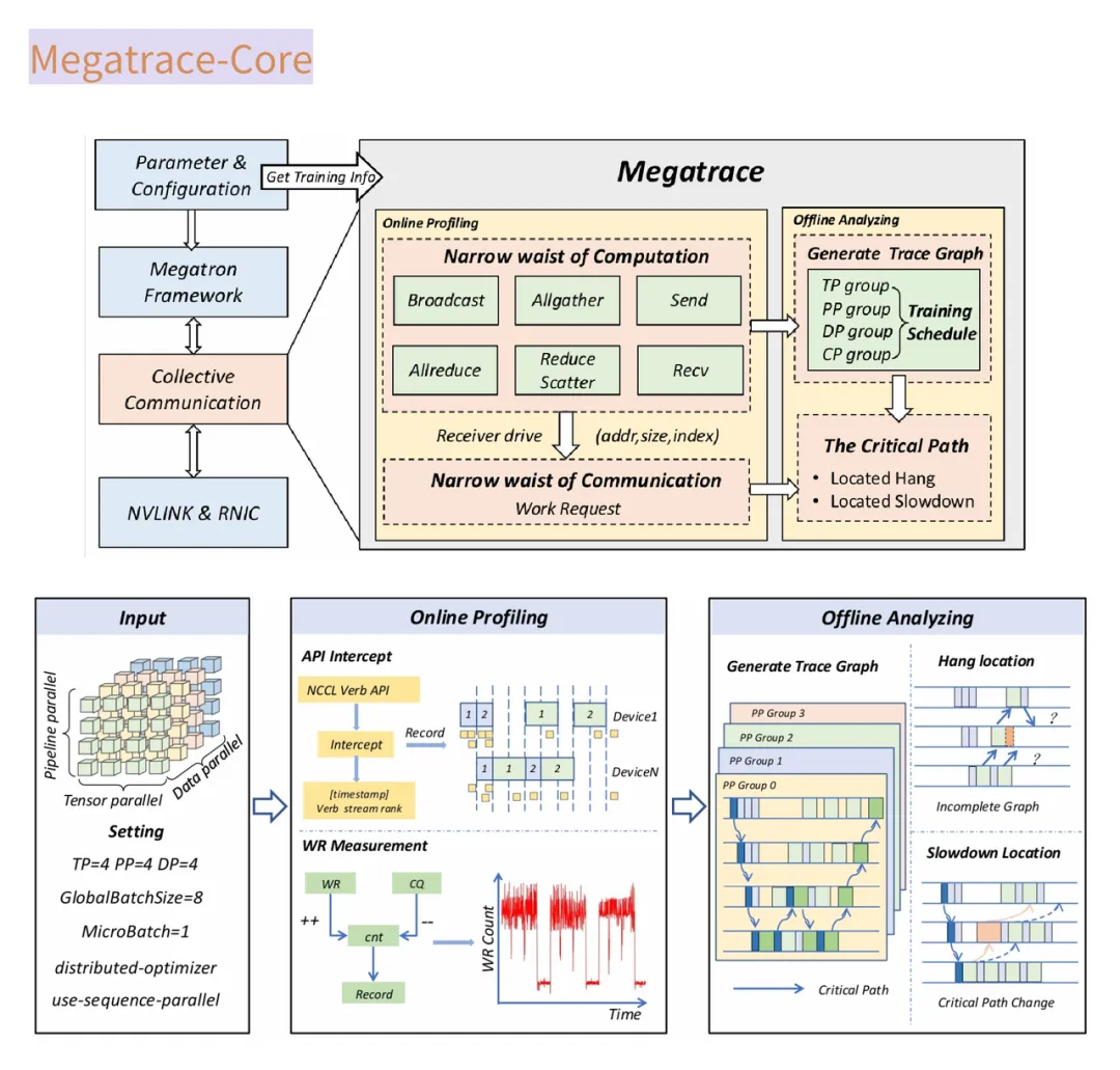 简单来说,MegaTrace 就是把训练过程从“黑盒”变成“透明玻璃盒”,让研发与运维团队能够看清 谁在拖慢系统、哪里出了问题。