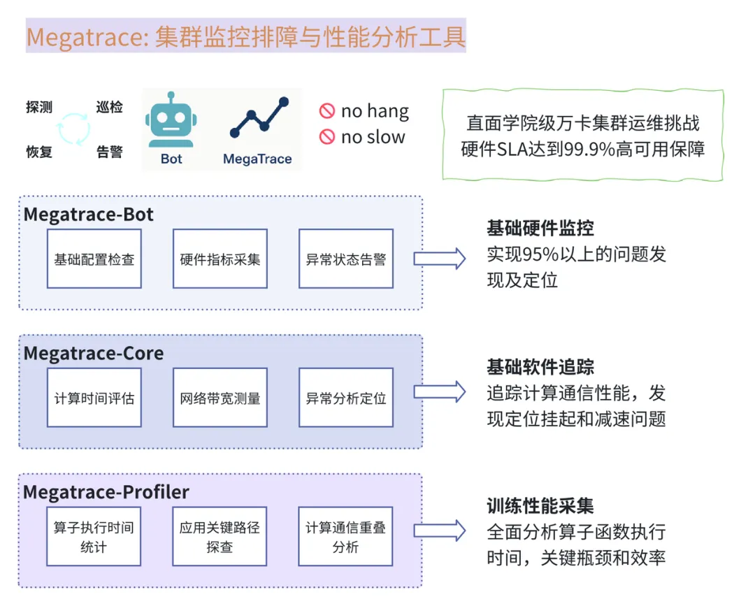 Megatrace可以有效的深挖出这种深层问题,可以支撑万卡集群99.9%的服务质量保障。