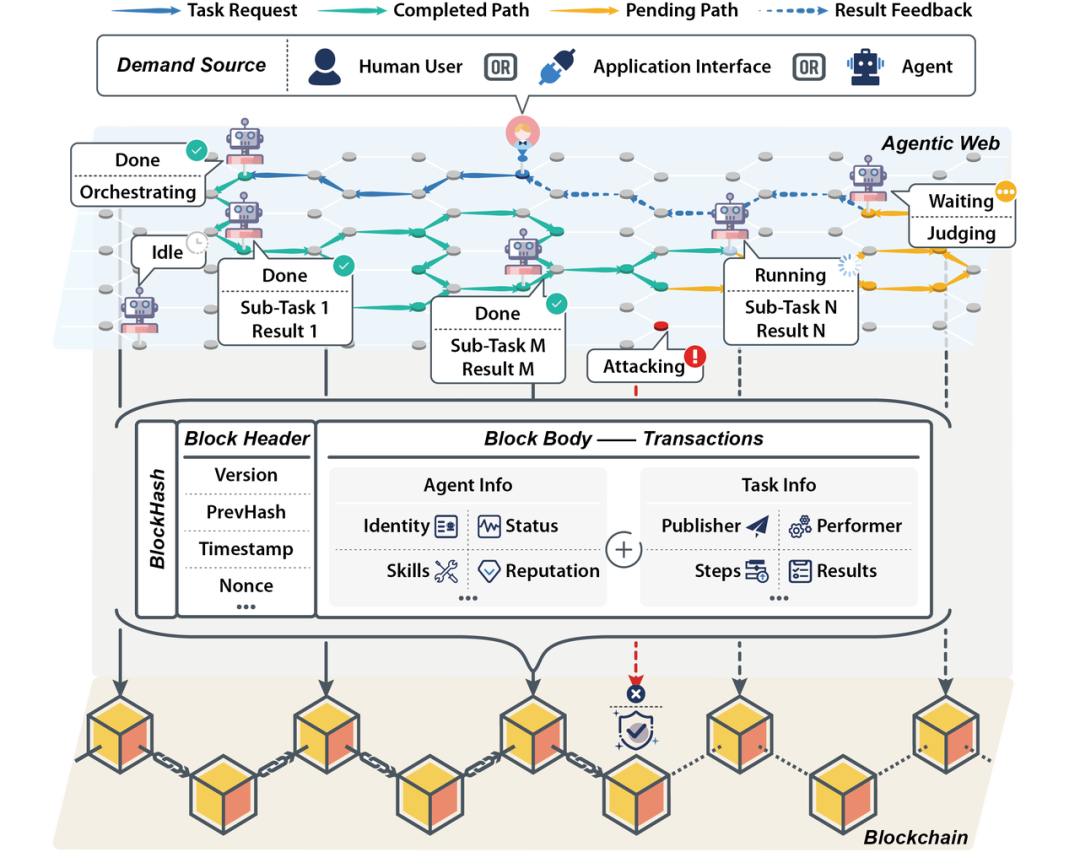 其技术亮点在于“任务到价值”的全流程保障:用户提出复杂任务,互联网上的智能体在协议支持下自由协作;裁判智能体负责监督和判定质量;区块链系统则确保全程的可追溯、可验证和结果公正。这一模式实现了跨机构、跨领域的开放协作,释放出智能体互联网的规模效应。