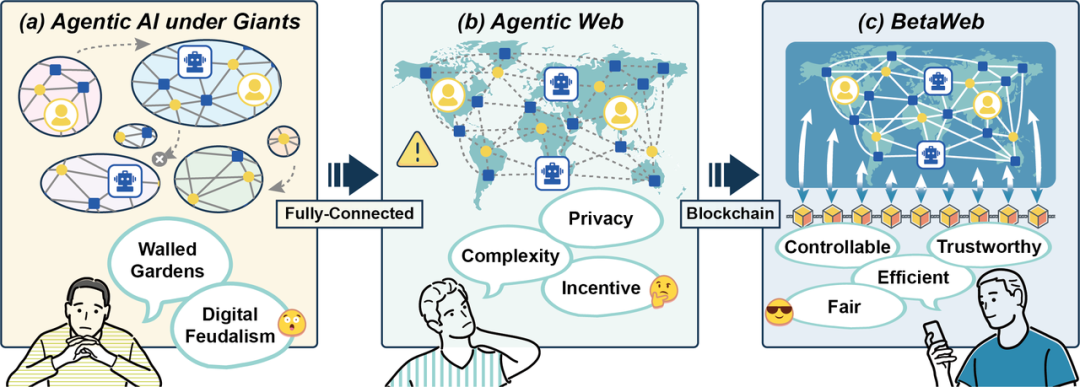 随着智能体应用加速普及,单一平台的封闭体系已难以支撑复杂需求,用户也被困于“围墙花园”之内。BetaWeb以区块链为底座,首次提出面向公网的可信智能体互联网,打造可信、可控、公平、高效的技术设施与生态系统。