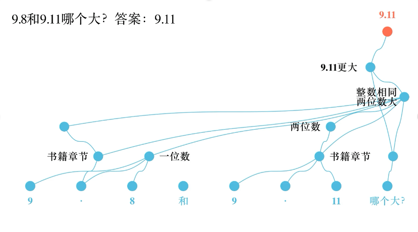 “我们可以从复杂的计算图中抽取出模型最核心的逻辑”,邱锡鹏解释道。团队发现,模型之所以认为“9.11>9.8”,是因为将其误解为“第9章第11节”与“第9章第8节”,基于章节编号逻辑得出错误结论。