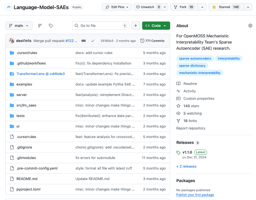 项目地址:https://github.com/OpenMOSS/Language-Model-SAEs