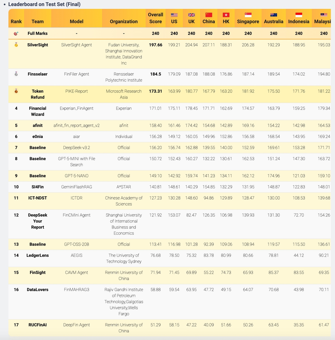 图四:ICAIF FinDDR 2025国际竞赛最终排名