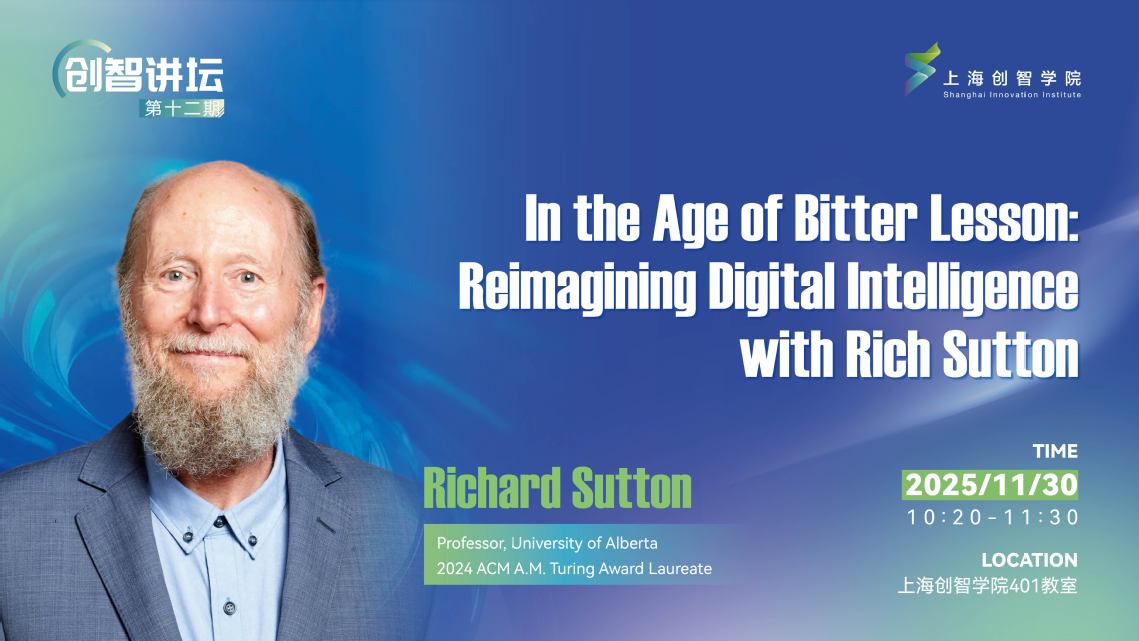 今天(11月30日),计算机科学最高荣誉 ACM 图灵奖得主、强化学习之父Richard Sutton 教授到访上海创智学院,做客创智讲坛第12期,与学院师生展开了一场别开生面的交流。