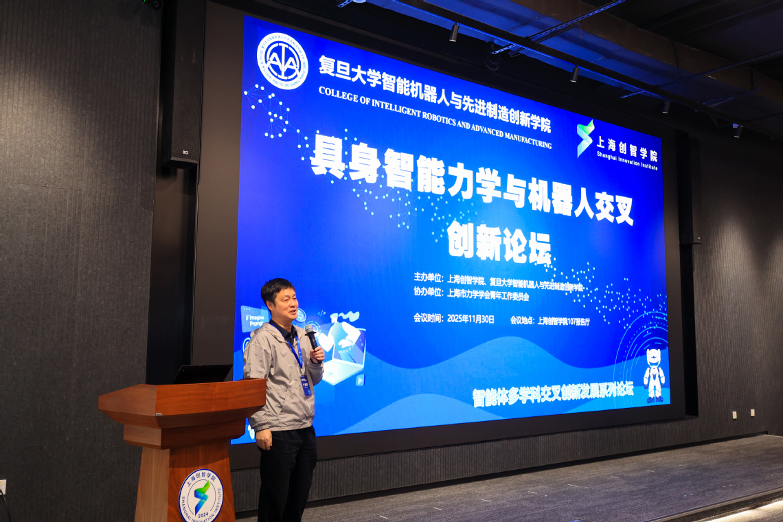2025年11月30日,由上海创智学院与复旦大学智能机器人与先进制造创新学院联合主办、上海市力学学会青年工作委员会协办的“具身智能力学与机器人交叉创新论坛”在学院成功举行。本次论坛旨在响应时代对前沿科技融合创新的迫切需求,践行跨学科交叉研究的使命,吸引了来自北京大学、浙江大学、中国科学技术大学、哈尔滨工业大学(深圳)、同济大学、南京航空航天大学等全国多所顶尖高校与科研机构的青年才俊和知名学者齐聚一堂,展开深度对话与思想碰撞。